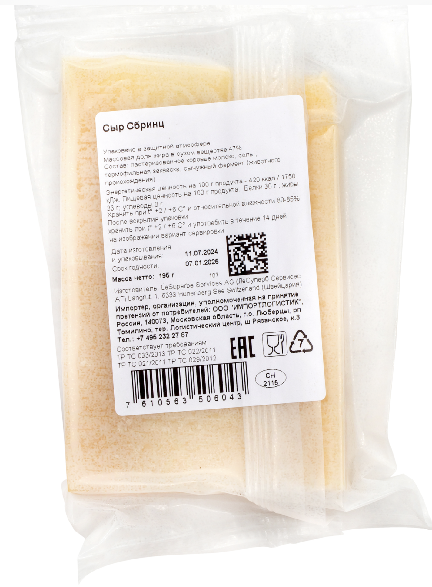 Sbrinz AOP является не только самым старинным экстра твёрдым сыром Швейцарии с более, чем 500-летней историей, но также первым швейцарским сыром, который был экспортирован уже в 1530 году на мулах через Альпы в Италию. Не без причины, ведь и сегодня для лучших поваров очевидно: Sbrinz AOP не должен прятаться от пармезана. Наоборот! Sbrinz AOP - сыр, который требует времени. Очень много времени. После обширной солевой ванной круги сыра зреют в течение минимум 24 месяцев, чтобы полностью раскрыть ни с чем не сравнимый аромат. Контролируемое происхождение из одной из около 30 отобранных сыроварен в долинах и Альпах из самого сердца Центральной Швейцарии, исключительно натуральное производство сыра и свежее сырое молоко от коров, питающихся только травой и сеном, гарантируют неизменно высокое качество. Чтобы произвести 45 кг сыра необходимо около 600 л молока.