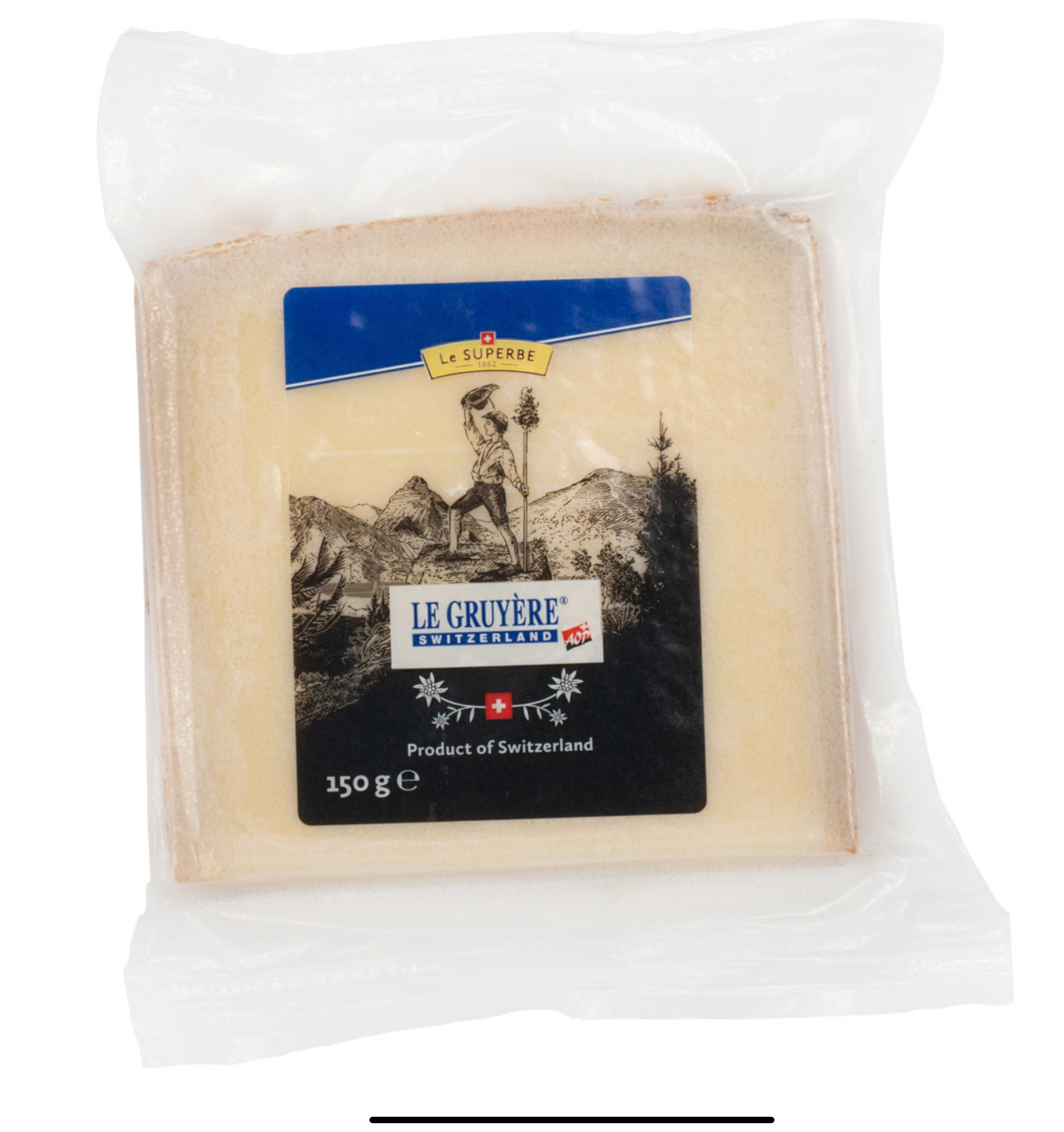 Отличается фруктовым, слегка солоноватым вкусом (в процессе созревания головки Грюйера периодически переворачивают и обмывают соленой водой). Период созревания 5 месяцев. Грюйер – главный компонент фондю, но кроме этого, он очень вкусен на тостах, в слегка расплавленном виде. Пряно-спелый вкус с мельчайшими кристаллами соли, фруктовая нота, изысканный аромат жареных каштанов или фундука - Le Gruyère AOP является сыром с ни с чем не сравнимым характером. Его история восходит к 1115 году, когда монахи в замке Рогемонт в регионе Gruyère в Западной Швейцарии начинали обрабатывать близлежащие Альпы. Gruyère AOP – самый влиятельный и важный швейцарский сыр – и сегодня остается фаворитом швейцарцев среди домашних сыров. Стабильно высокое качество гарантируется не только защищенным происхождением каждого круга Gruyère AOP, но и аутентичным производством по передаваемому из поколения в поколение рецепту. Исключительно натуральные ингредиенты, свежее сырое молоко, обрабатываемое в сыроварне, традиционное созревание в характерной зернистой коричневатой смазываемой корочке - только так получается настоящий Gruyère AOP.