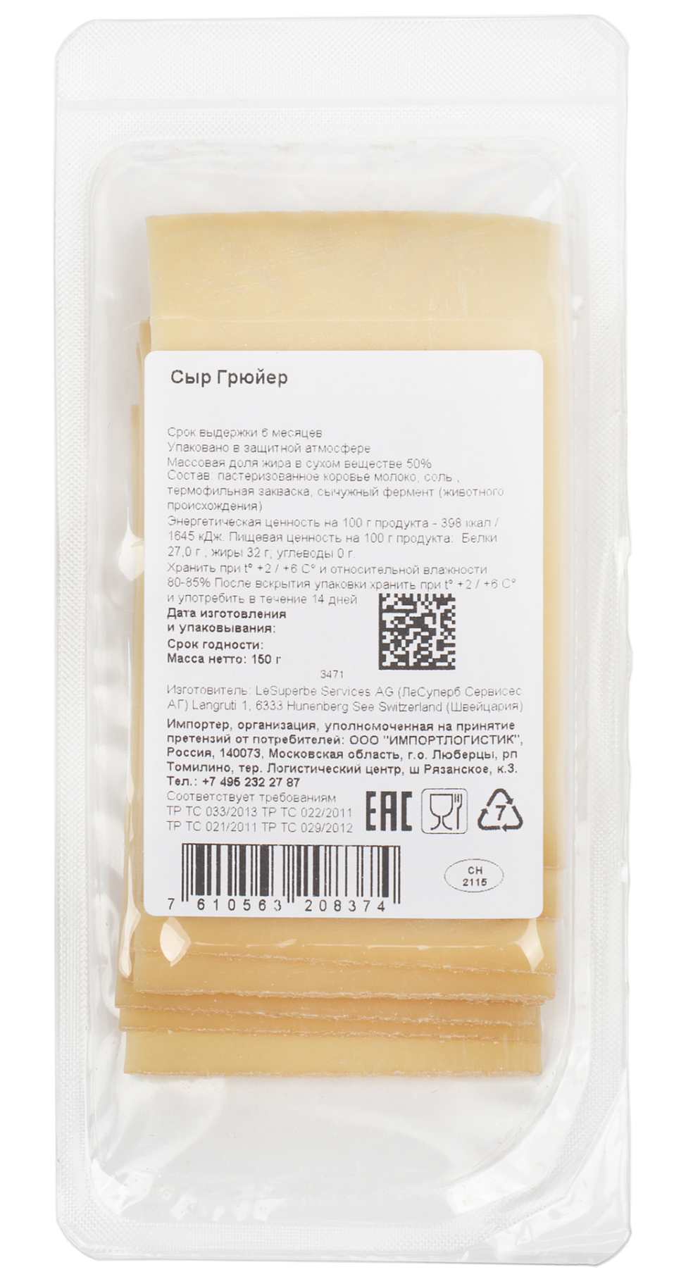 Грюйер нарезка, 150 г