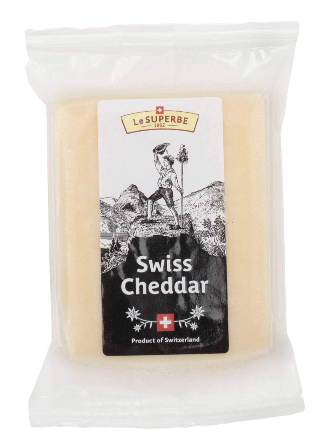 Гладкая текстура, мягкий, сладкий, сбалансированный и насыщенный вкус - вот те особенности, за которые сыр Чеддер так любят англичане. Сыр Чеддер назван по месту первоначального производства – в честь деревни Чеддер на юго-западе Англии. Производство этого сыра началось еще в 12-м веке. Его выдерживали в просторных пещерах на краю деревни, известных как „ущелье Чеддер“. Чеддер отличается гладкой текстурой, получаемой благодаря одноименному процессу производства – чеддерингу, регулярному переворачиванию, позволяющему сыру равномерно созревать. LeSuperbe заимствовала технологию производства традиционного сыра Чеддер, национальной гордости англичан, и производит сыр в Швейцарии ремесленным способом из лучшего швейцарского коровьего молока.