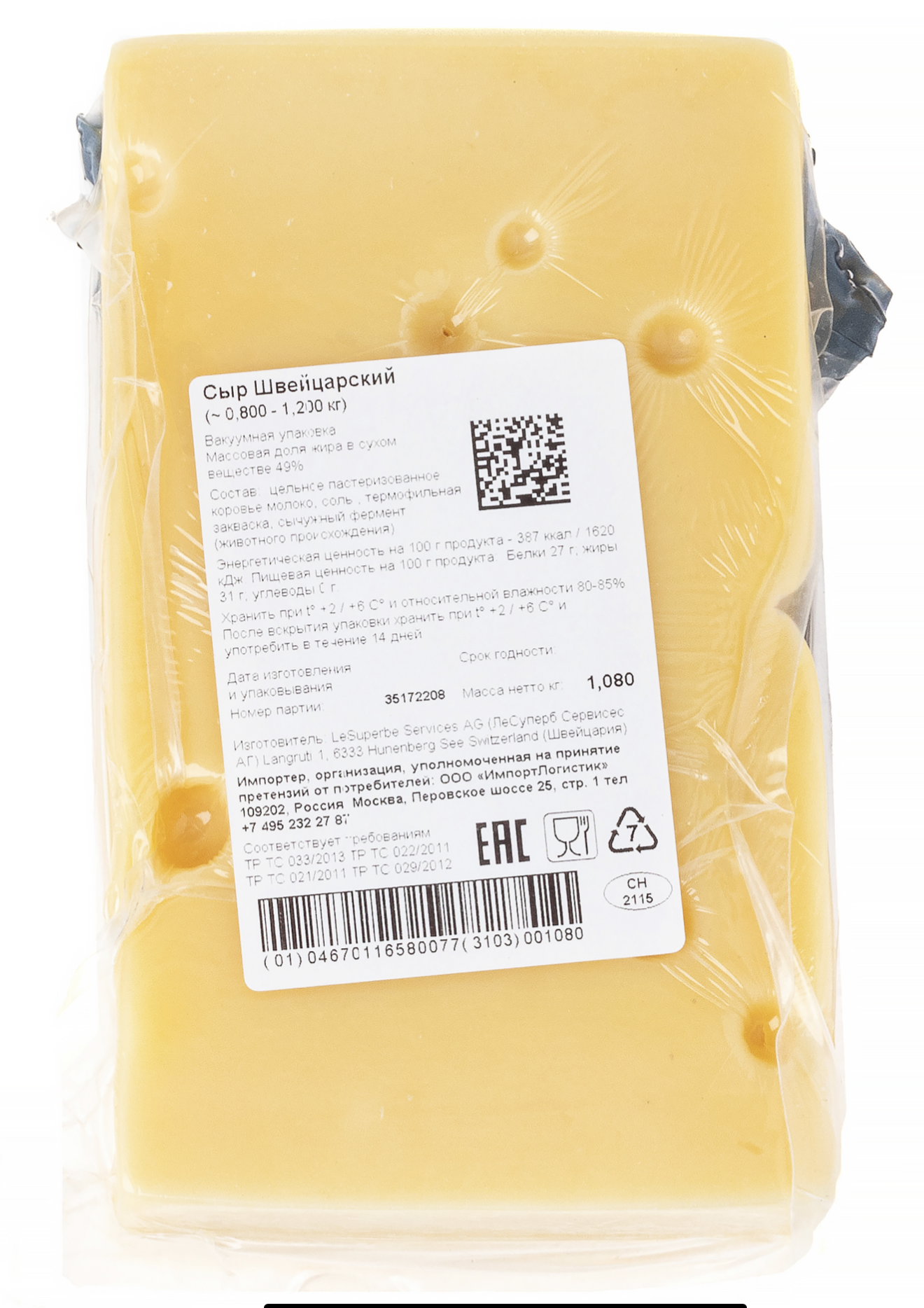 История сыра Швейцарский началась в далеком 1845 году, когда 200 швейцарцев из кантона Гларус отправились на корабле „Superb“ в Америку для основания города Нью Гларус, в штате Висконсин. Среди основателей города был один из членов семьи учредителей компании “Lustenberger & Durst SA” - Никлаус Дюрст, который привез в своем багаже уникальный рецепт премиального швейцарского сыра. Этот безупречный деликатес с большими дырками должен был обрести известность в Новом Свете, как „швейцарский“ сыр. Сегодня, производимый в Швейцарии сыр Швейцарский “LeSuperbe” сочетает в себе традиции и инновации Старого и Нового Света. Сыр изготавливается вручную по секретному рецепту из отборного швейцарского молока, произведенного местными фермерскими хозяйствами. Сыр Швейцарский