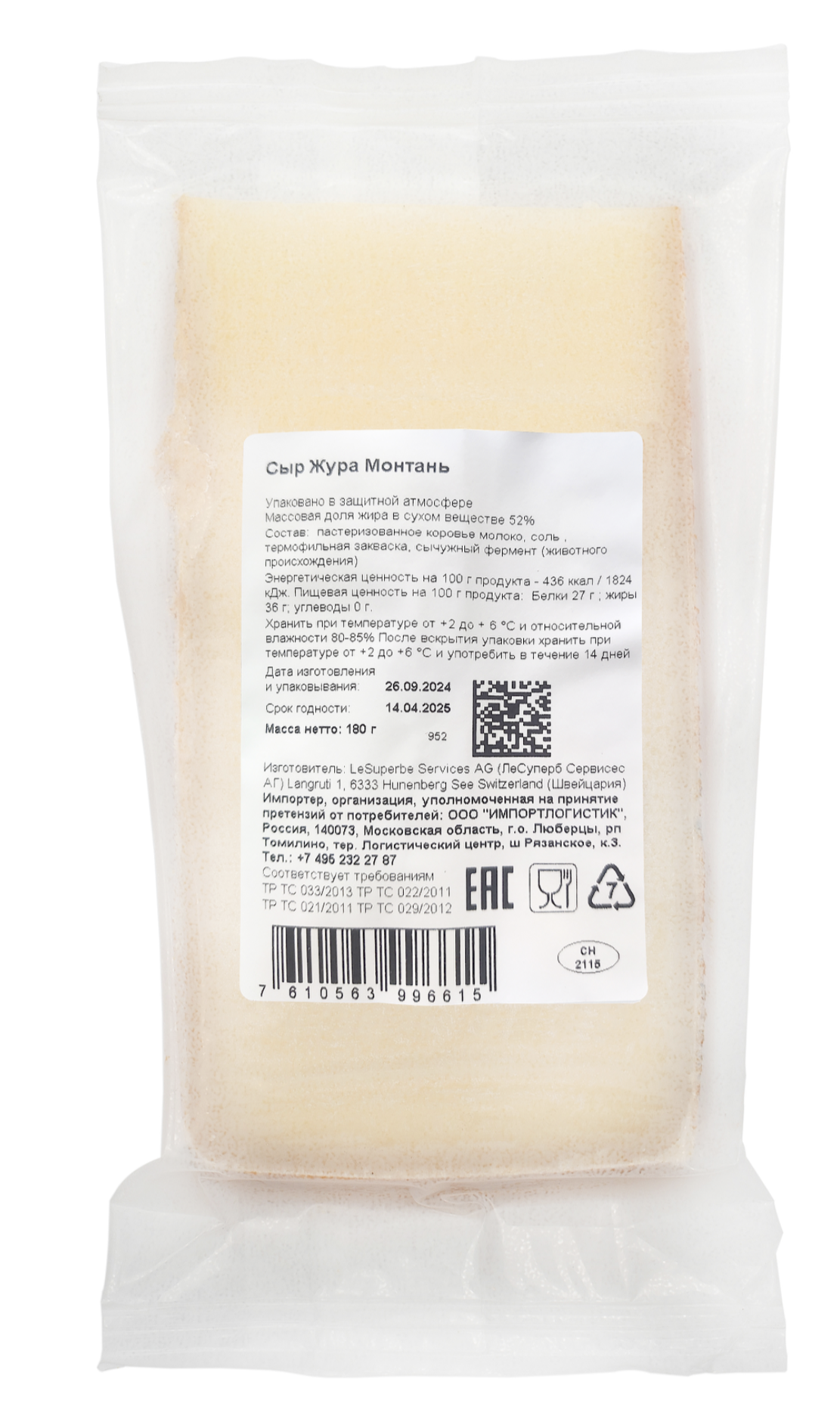 Секрет сыра кроется в насыщенном и ароматном горном молоке. Чем дольше зима и чем больше снега, тем зеленее и сочнее трава. Коровы питаются исключительно свежее молоко, которое обрабатывается местными сыроварами по старинным рецептам, передающихся из поколения в поколение. Сыр выдерживается в специальных погребах и в процессе выдержки головки обрабатываются секретным веществом. После 10 месяцев сыр Jura Montagne, созданный местной природой, готов к употреблению.