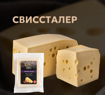 Отличается большой величиной головок, размер которых позволяет полностью раскрыться его самобытному характеру. Крестьяне, следуя строжайшим процедурам контроля качества, поставляют на сыроварню только первоклассное свежее молоко, благодаря чему каждая головка сыра отвечает высоким требованиям, предъявляемым к безупречной и здоровой натуральной продукции. Характерные сырные глазки возникают во время созревания. В результате естественного брожения образуется углекислый газ, который, не имея возможности выйти наружу, скапливается в разных местах сырного теста. Эти места скопления газа и становятся знаменитыми сырными глазками, типичными для каждой головки Свиссталера.