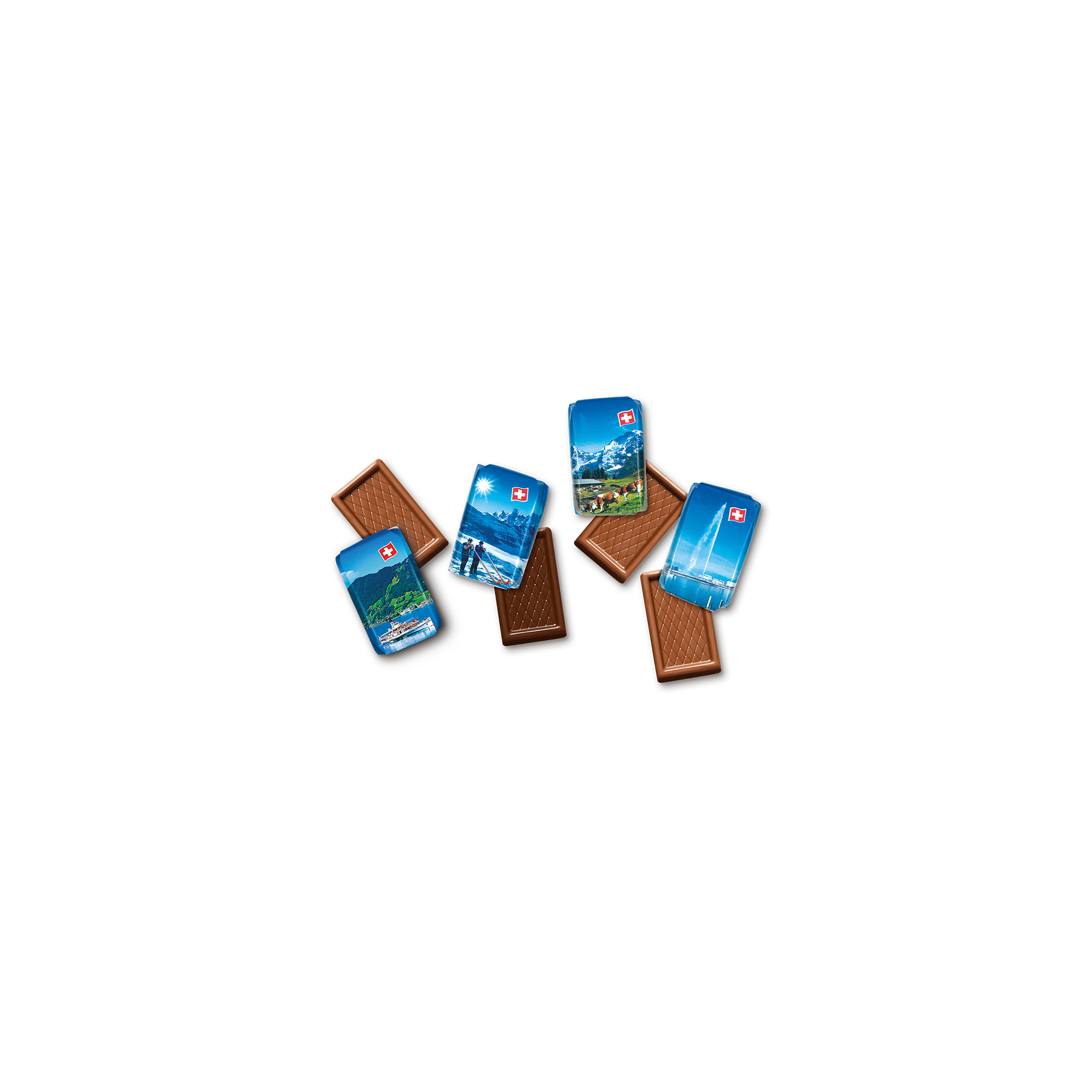 Разнообразные вкусовые добавки включают молоко, молочный фундук, шоколадное пралине и биттер. Коллекция швейцарских сувениров представляет культовые и традиционные дизайны, представляющие собой отличительные достопримечательности Швейцарии. Эти шоколадные конфеты - прекрасный сувенир, который напомнит о местах, которые вы посетили.