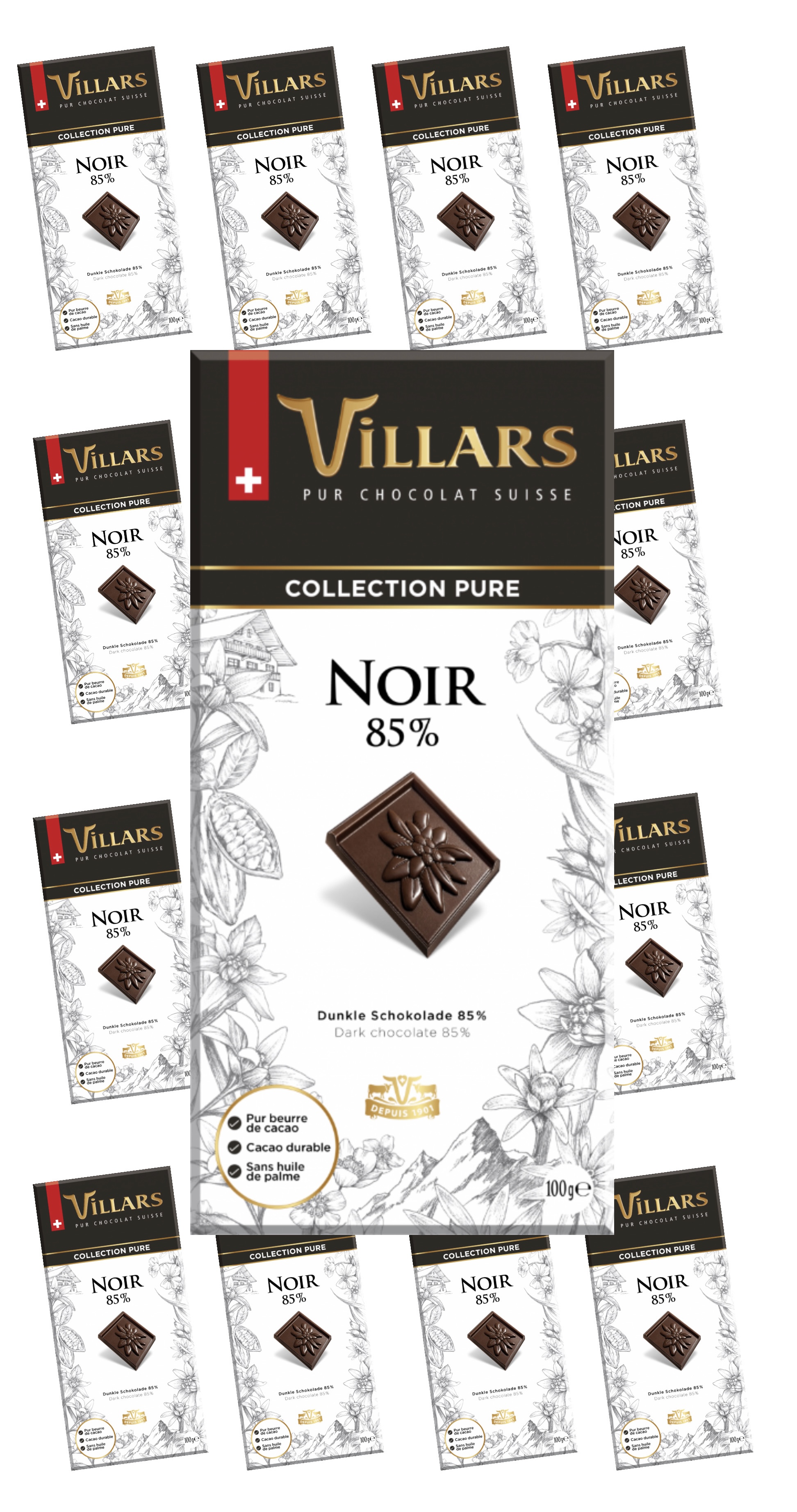 На 85% тёмный. На 100% швейцарский. Этот на удивление нежный горький шоколад полностью изменит Ваше представление о том, каким может быть натуральный шоколад с высоким содержанием какао…Горечь, неотъемлемый компонент вкуса любого тёмного шоколада, не является здесь доминантой, а лишь великолепно оттеняет и подчёркивает потрясающий аромат уникального бленда из какао бобов особой обжарки…